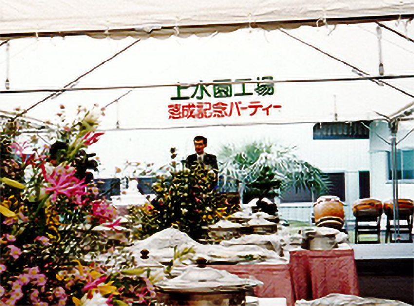 1992年9月13日、宮崎上水園新工場落成パーティーには、旭化成の宗猛副監督、谷口浩美選手はじめ、250人もの関係者が出席してくださいました。